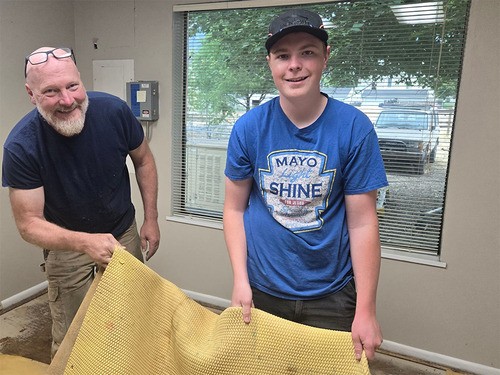 Thomas (right) spent much of his summer helping Key – from tearing up ancient carpet to running the board for the Morning Show.